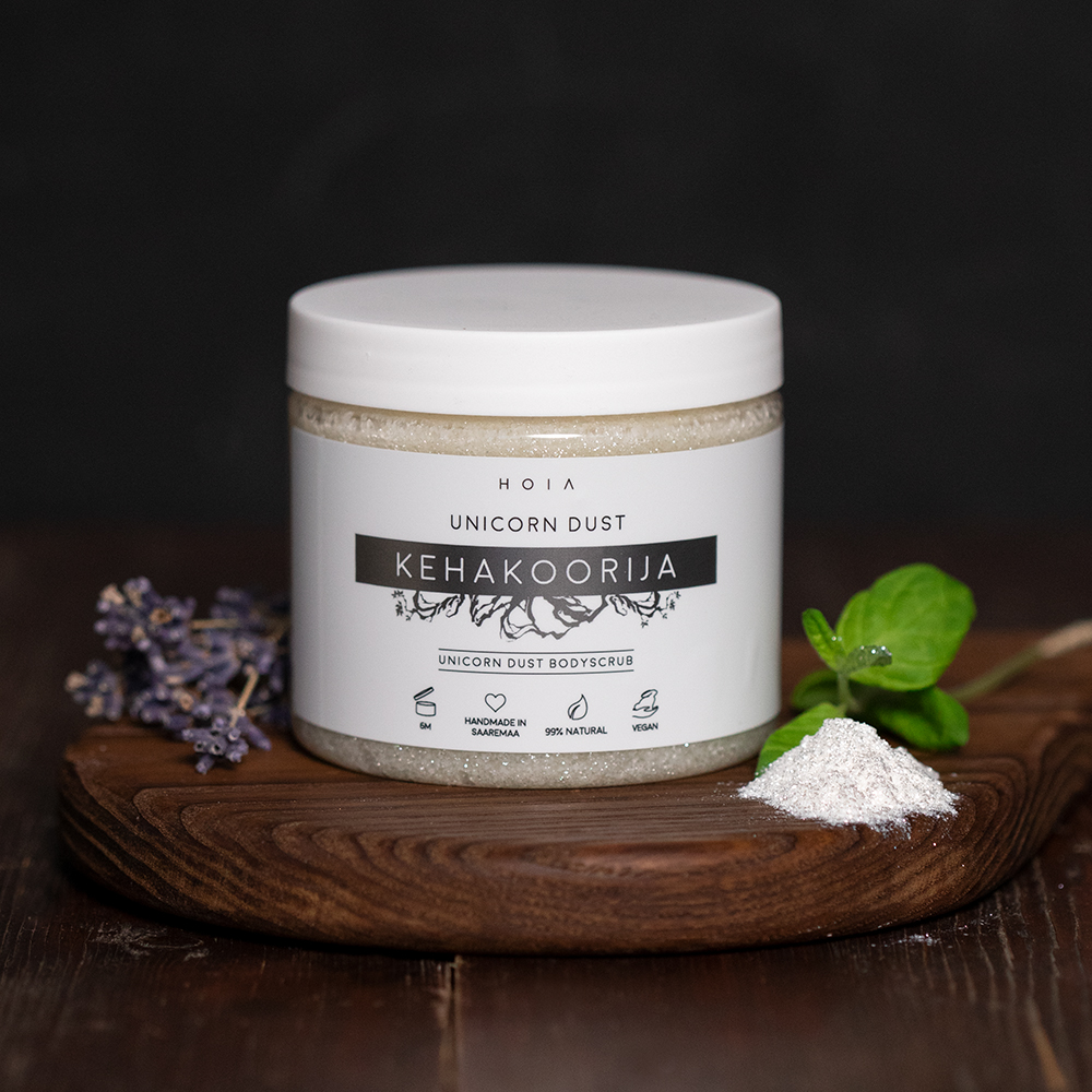 “Unicorn Dust” on hõbedase kumaga kehakoorija. See on niisutav koorija, mis jätab naha siidiselt pehmeks ja luksuslikult sädelevaks. Koorija on rikas orgaanilise rafineerimata sheavõi ja kookosõli poolest, mis tõhusalt niisutavad ja pehmendavad nahka. Sisaldab ka suhkrut, mis pakub nahale mõnusat ja stimuleerivat massaaži.