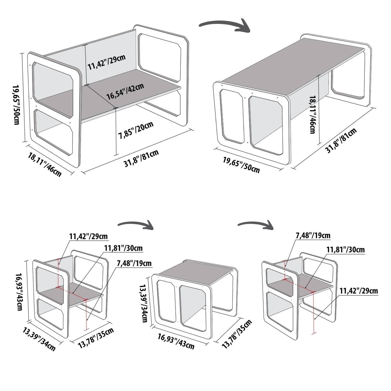 • Ideaalne iseseisvumiseks: Kohandatud väikelaste pikkusele ja võimetele, võimaldades neil iseseisvalt istuda, süüa või mängida ilma abita.