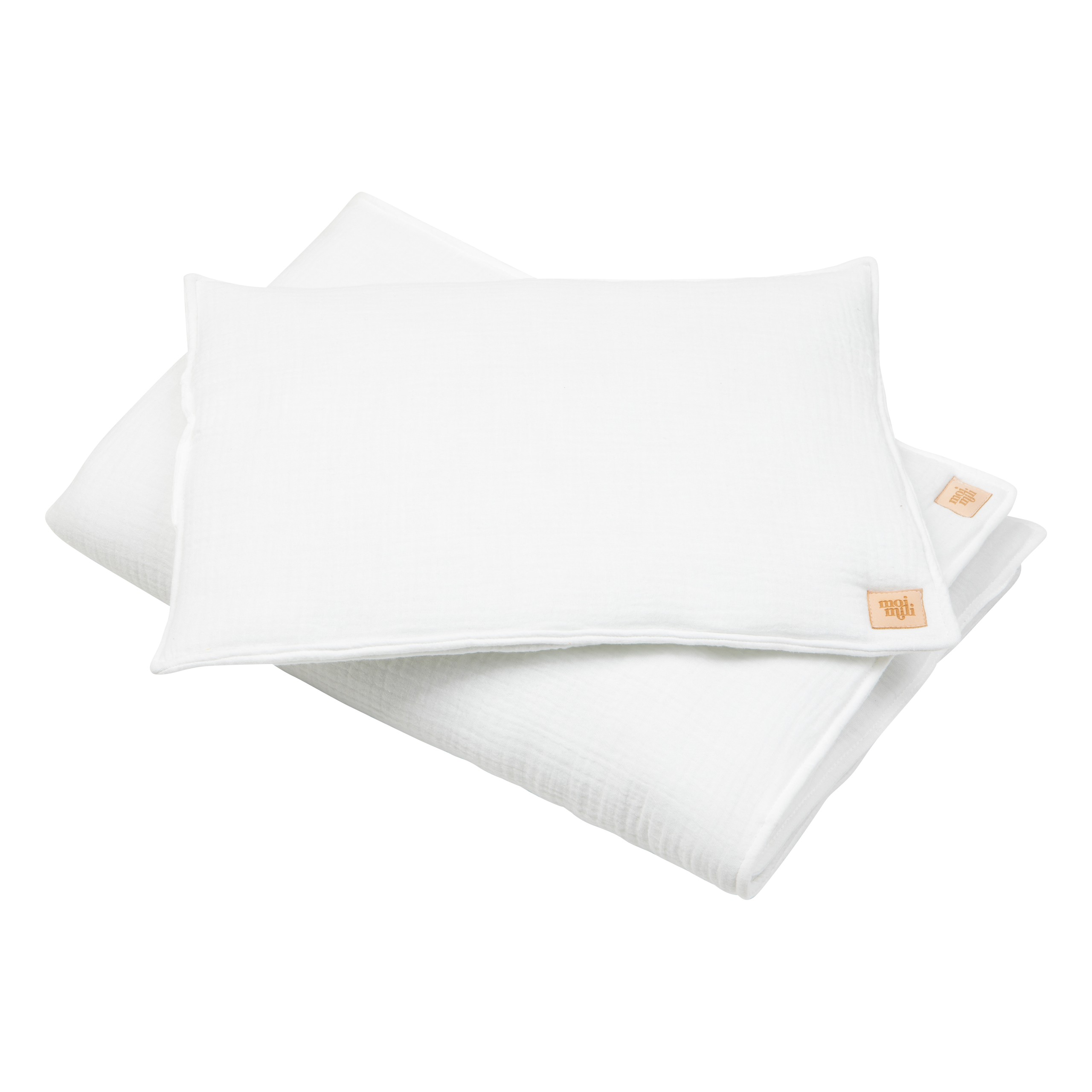 Komplekt sisaldab kerget musliinist tekki ja patja, mõlemad on valmistatud 100% puuvillamusliinist ning mõlemal on pehme, sisseõmmeldud täidis. Eraldi tekikotte ega padjapüüre pole vaja. Kangas on õhuline, pehme ja ohutu allergilisele nahale, muutes selle ideaalseks vastsündinutele ja beebidele.